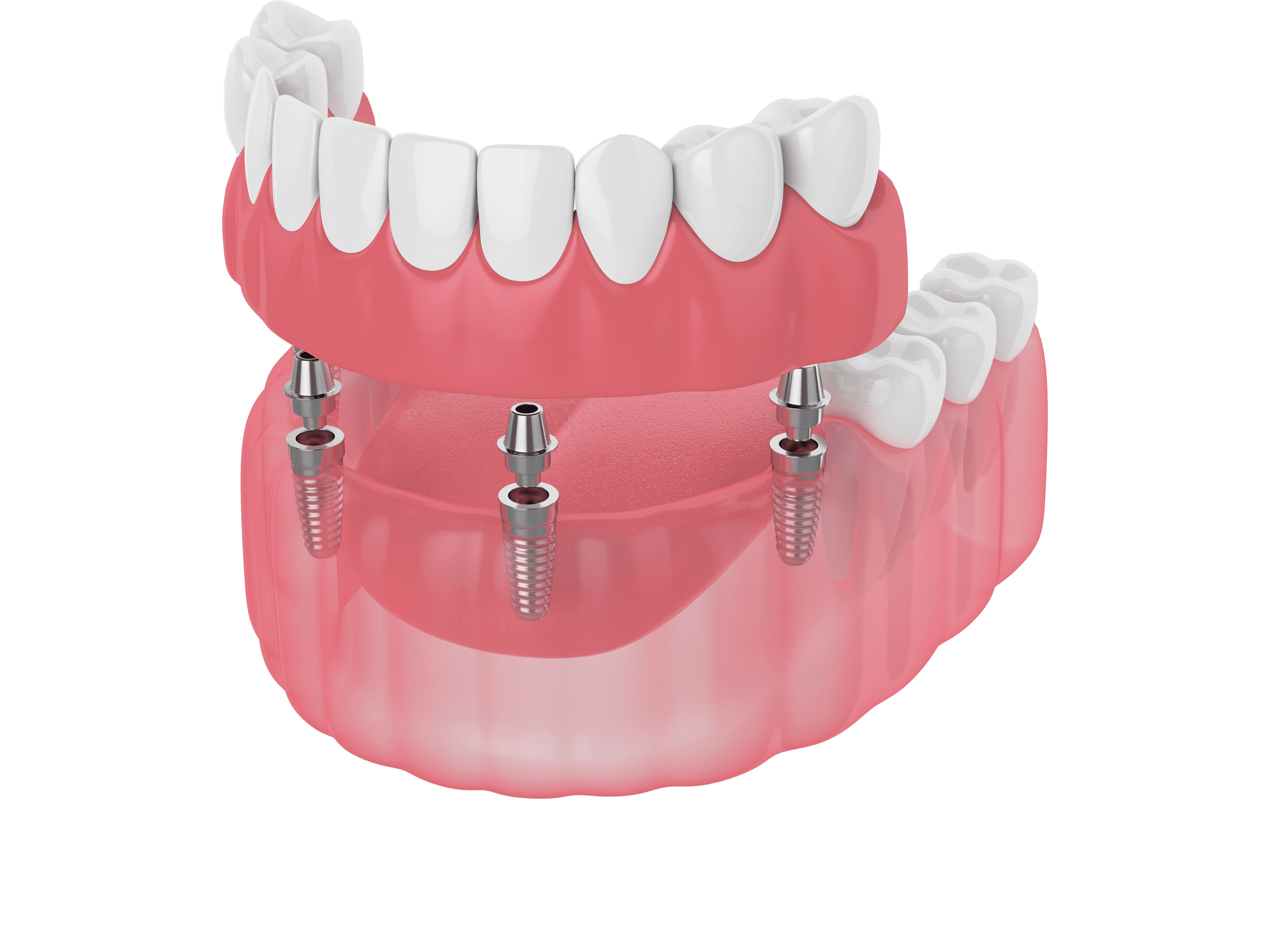 If you're missing several teeth or need extractions, a permanent denture solution may be a great option to restore your smile. With implant-supported dentures, we place 4-6 implants and then permanently fix a full arch of 3D-printed teeth to those implants, allowing you to chew, eat, and talk with ease again.
